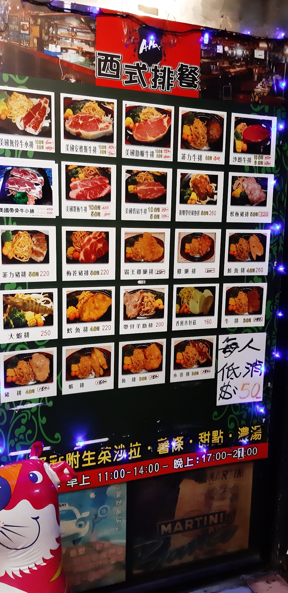 每週大約吃三次,濃湯、紅茶喝到滿意-選擇一種套餐還有薯條&麵包擇一、生菜沙拉&水果也是擇一,便宜又好吃,豬排、牛排、魚排、花枝排、蝦排、小卷排⋯每客套餐150元,還有雞腿排、霸王雞腿排、羊排、松板豬、菲力豬、牛排款式更多⋯價格平價又實惠-即可享受~吹著冷氣自在吃的阿哈牛排是吃午餐、晚餐的好地方???