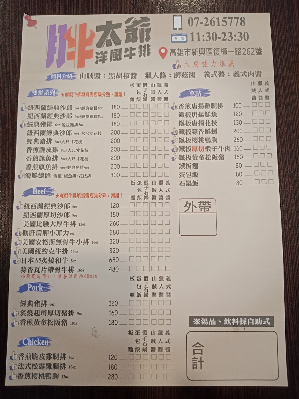 2024最新在地推薦餐廳的菜單_賓華洋風牛排的菜單、圖片