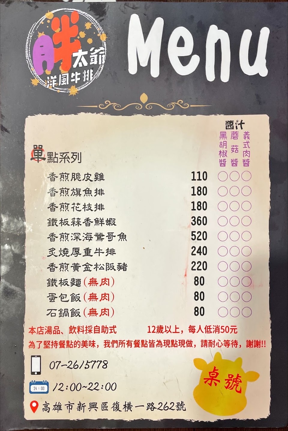 平價牛排,老闆很有個性,逛新興市場後,可以考慮。