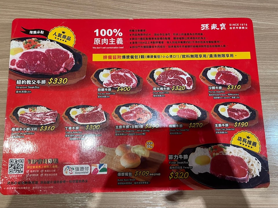 2024最新在地推薦餐廳的菜單_孫東寶牛排廣州店的菜單、圖片