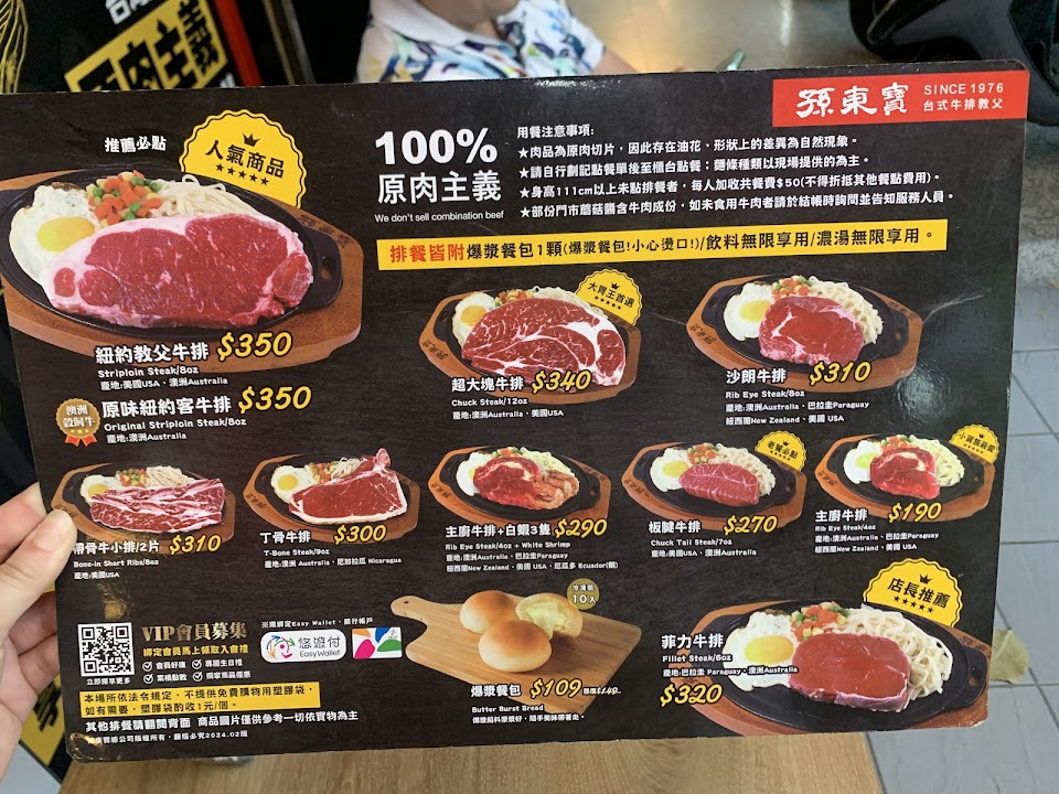 孫東寶牛排店以其獨特的特色,確實吸引了許多肉食愛好者的目光。店家堅持以100%純肉來打造他們的牛排,而非使用組裝肉,這一點讓我深感印象深刻。