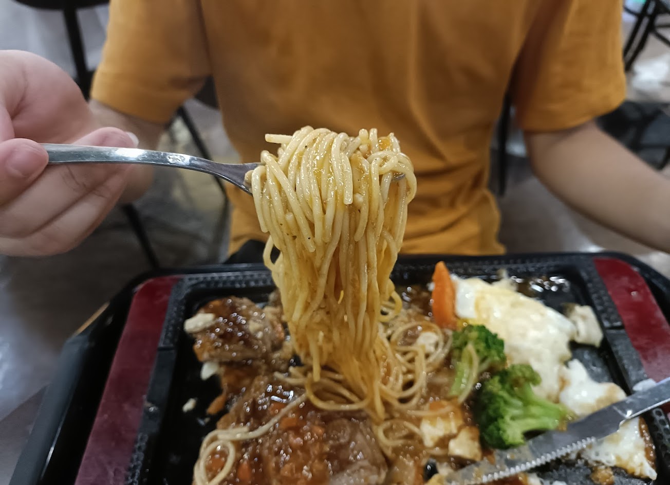 可樂沒氣;酥皮濃湯的皮是癱的軟的感覺像在吃菜瓜布;餐包沒烤過,口感像饅頭,味道很不好;麵只有兩口的份量,味道不好;牛排肉很老味道很死鹹;雞排肉很柴,皮很油,味道吃起來有點不舒服,除了濃湯有喝完,其他都吃幾口就無法再繼續。櫃檯調味料三瓶有兩瓶空的;店員態度不佳~加油!
