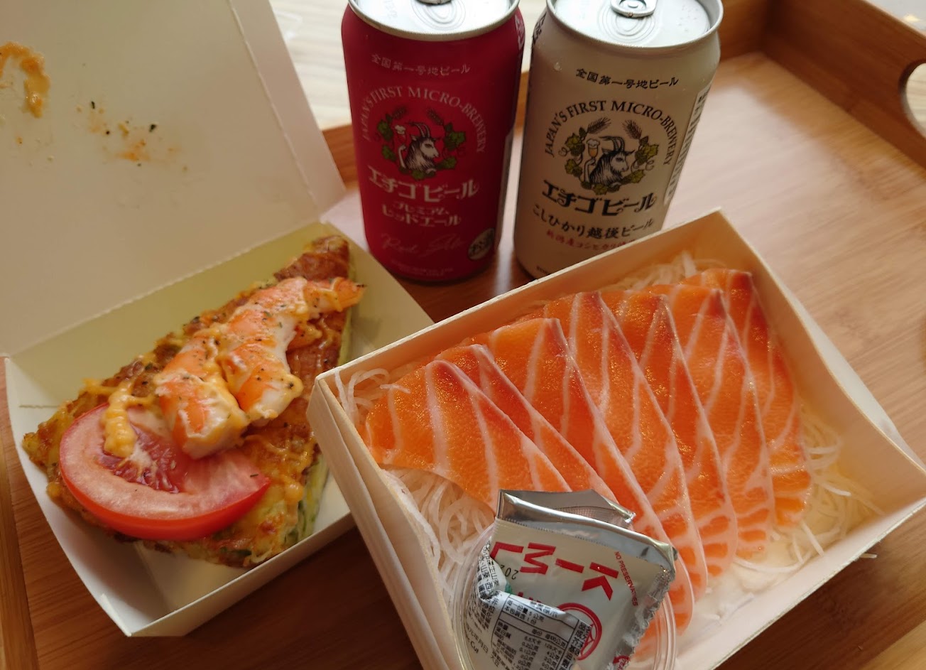 來五金行逛逛,順便買了一盒生魚片跟牛勒條,因為去得時間比較晚,早點去還有炸物可選購