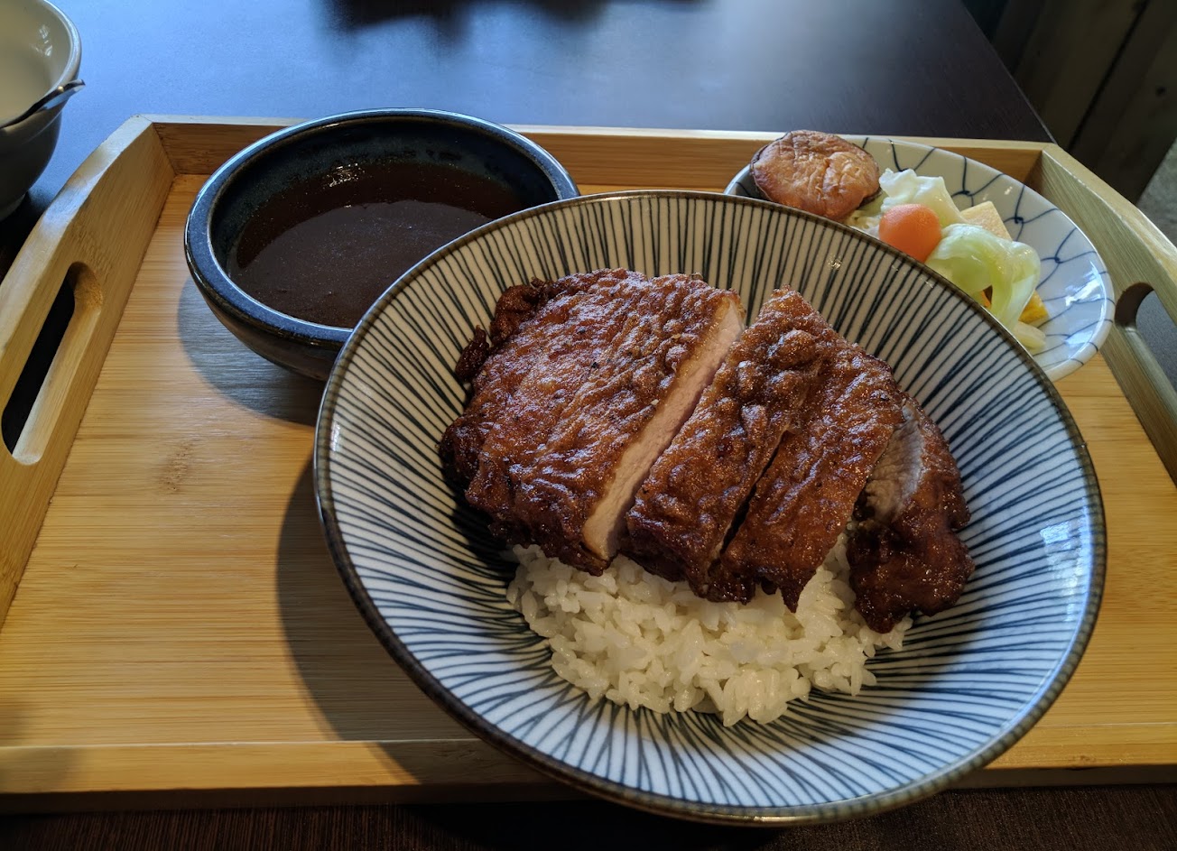 豬排真的非常厲害,皮薄又紮實好吃,光是這個肉就值得再來一次了 餐點還附一碗青菜,很棒! 不過南部口味,整體餐點過甜,吃完會有點膩感,稍嫌可惜 若紅茶改無糖、咖喱口味改成鹹的說不定味道會比較均衡! 服務 內用 餐點類型 午餐