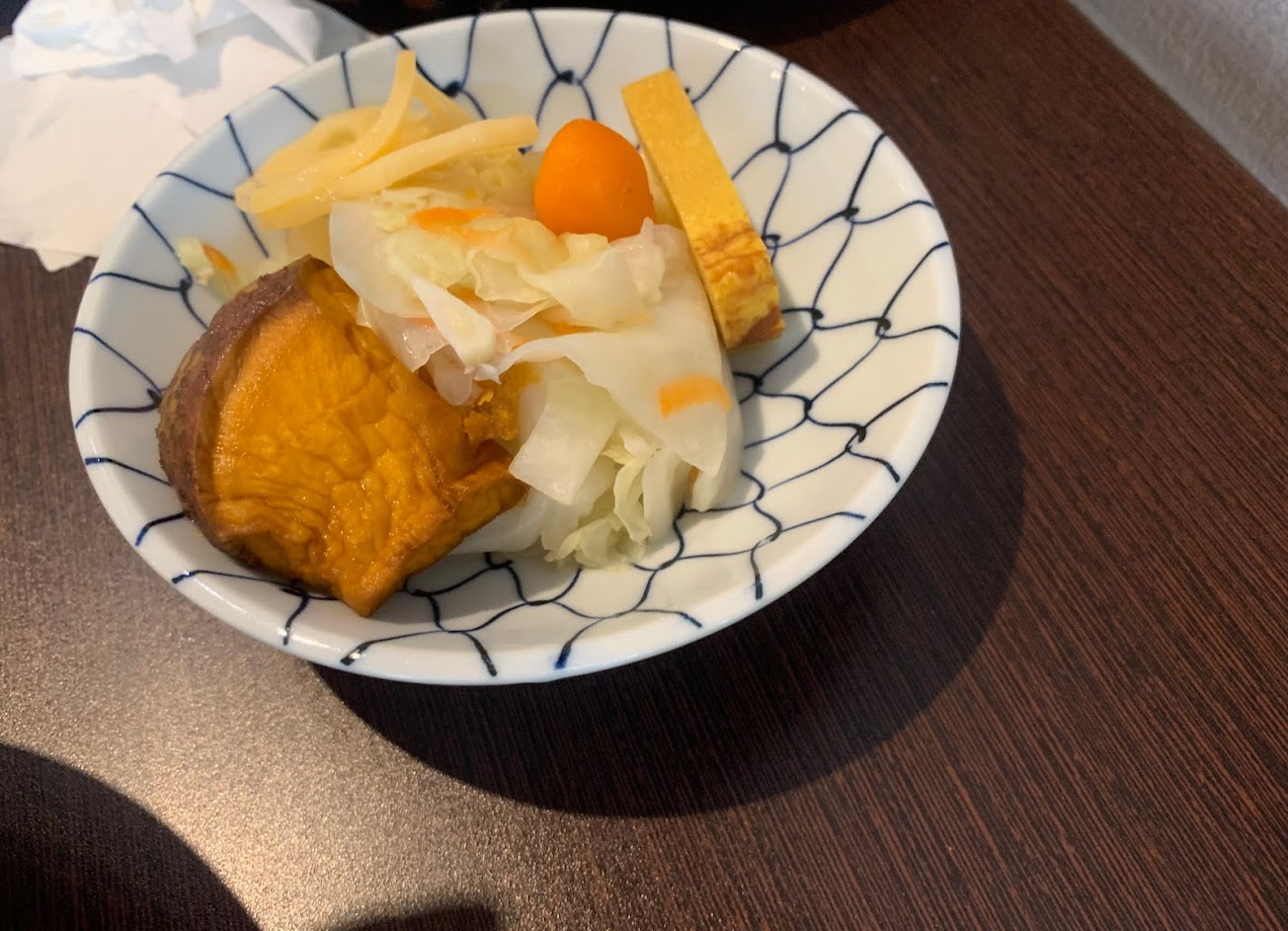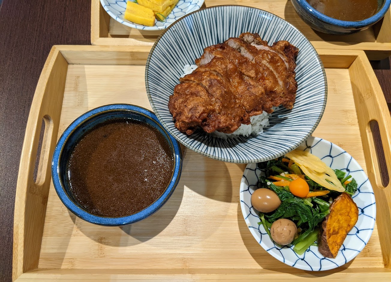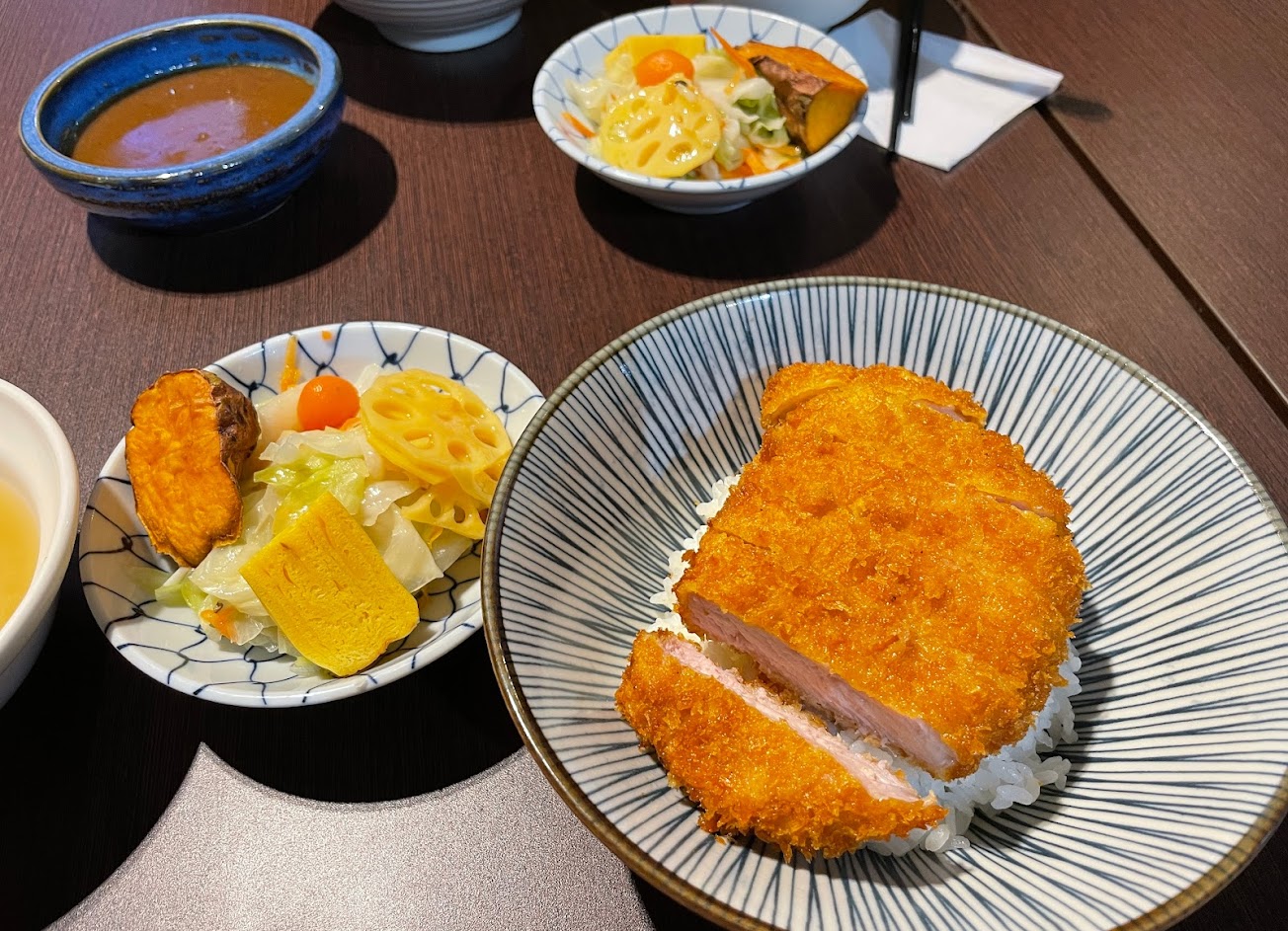 炸豬排和唐揚雞外皮都炸的很香脆,火候正好,豬排帶有些許嚼勁但不會過硬,唐揚雞口感軟硬恰恰好,重點是都不會過油,咖喱口味真的挺日式的味道較重,餐點等會附上配菜,高麗菜日式煎蛋和一些醃漬蔬菜,我最推裡面的紅蘿蔔和蓮藕和炸地瓜,蔬菜的清爽去搭配主餐達到一個不錯的平衡,自助的免費味增湯希望能在清淡一些會更棒!