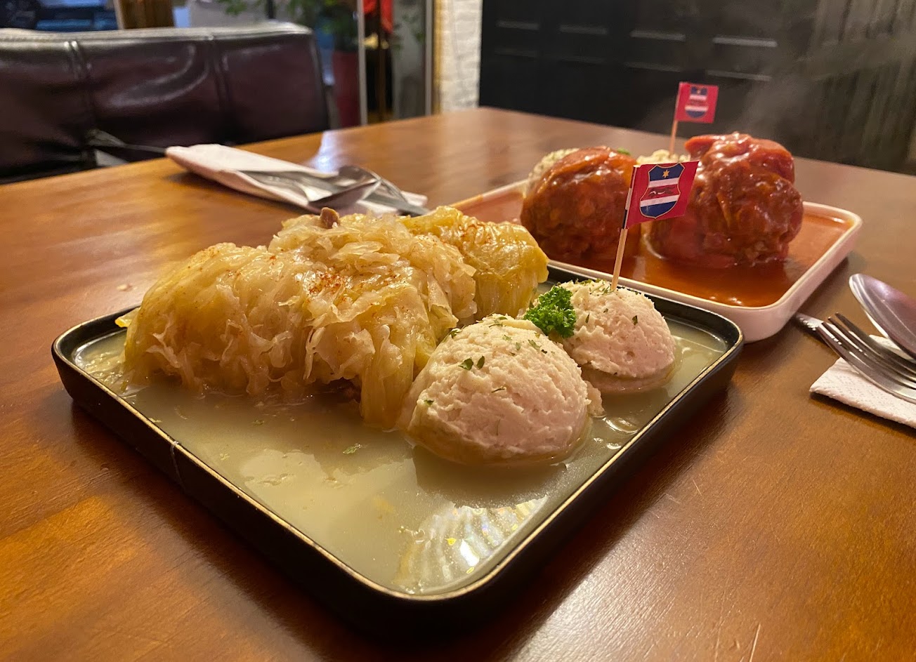 莎爾馬酸菜卷蛋酸菜非常美味?香腸也好吃,吃不太懂馬鈴薯泥