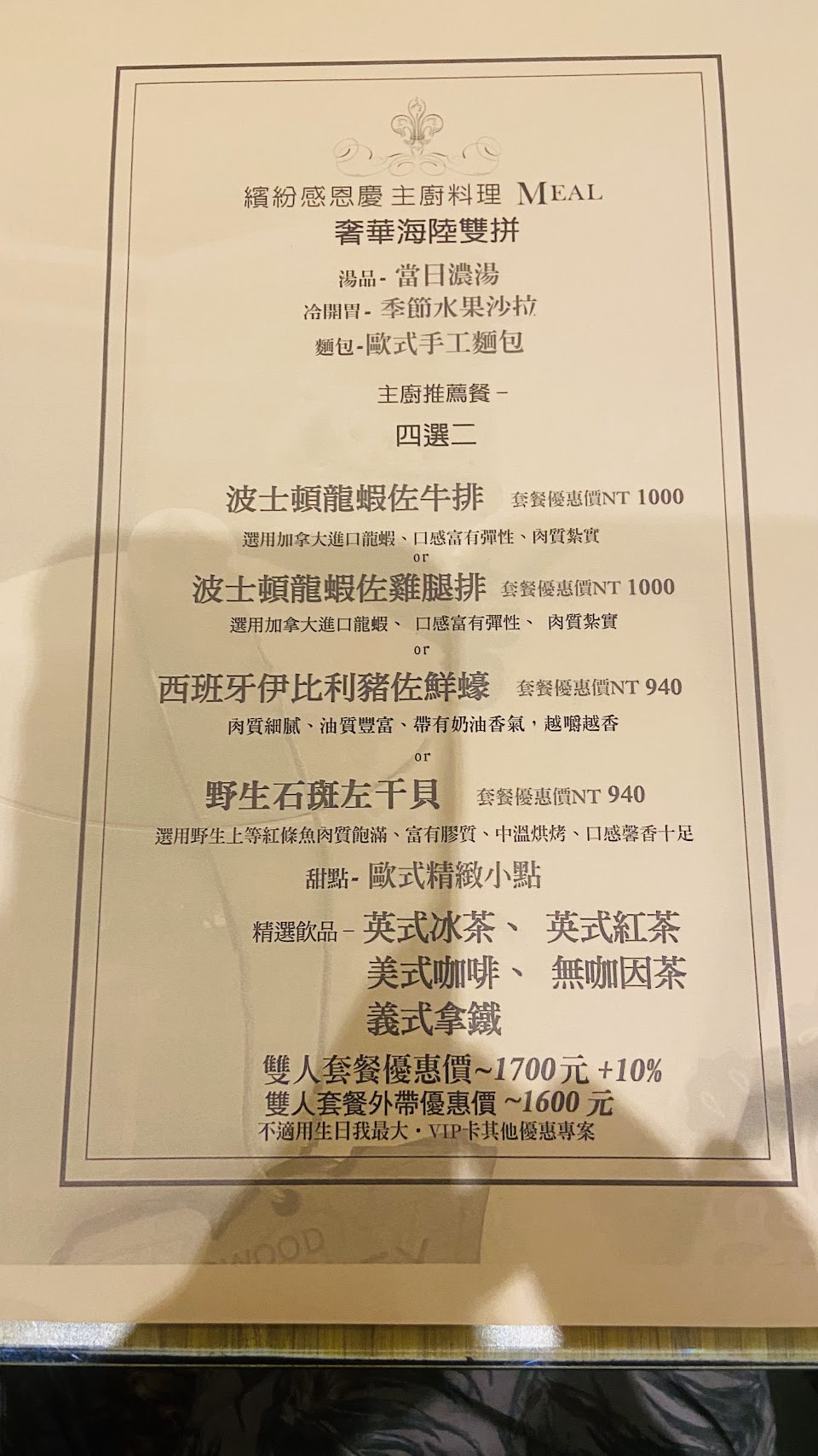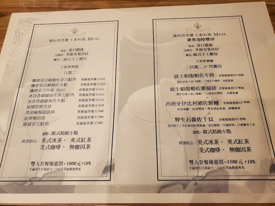 一個套餐吃下來,從前菜沙拉麵包主餐甜點飲料大約$650左右 餐點表現都可以到位,食量也很剛好不至於太飽,也不會讓你餓著