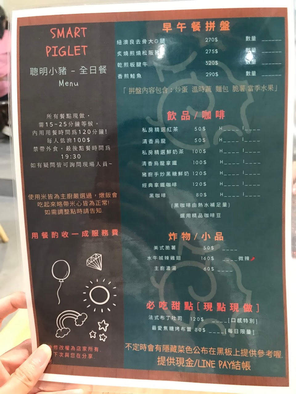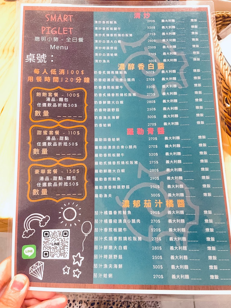 第一次來聰明小豬,覺得老闆娘好親切又有耐心、服務很好,東西更是好吃~今天點了松阪豬白醬義大利麵(松阪豬焦香味很棒)、炸牡蠣都很好吃,搭配餐南瓜濃湯,也超濃郁好喝!謝謝開店一週年的小禮物是新鮮水果冰棒,達克瓦茲蜜香紅茶口味的口感也好特別~整體都很棒!適合家庭、朋友情侶約會,期待下次再到此聚餐~