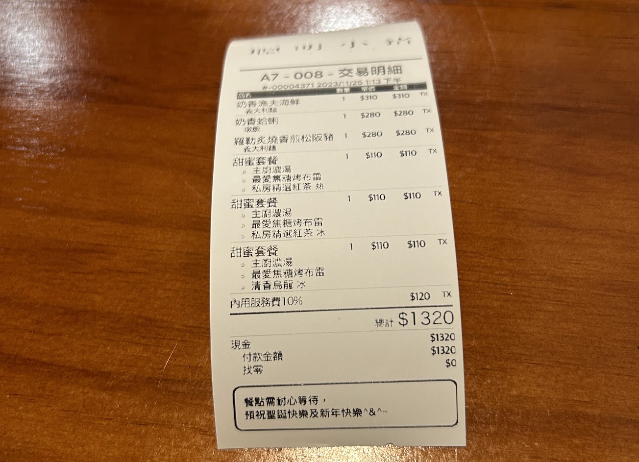 謝謝店家讓我們坐到8:00?