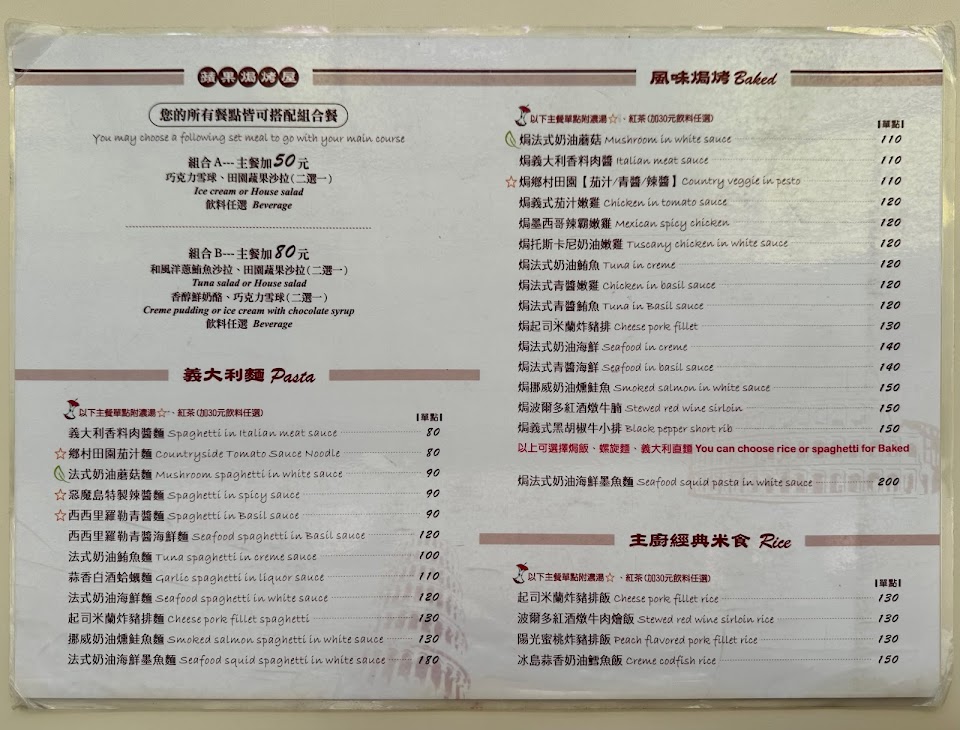 一般焗烤店價位偏高,一看菜單價錢有嚇到我,太便宜了!而且還有附餐紅茶和濃湯,升級套餐也不到200,不過口味因人而異,適合學生和家庭,便宜大碗??