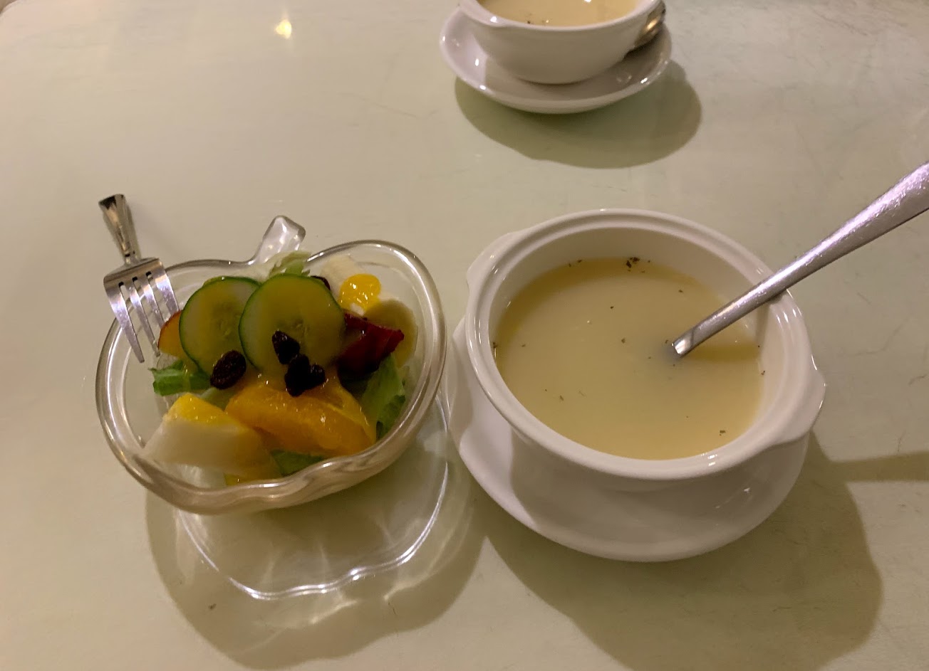首先沙拉的洋蔥搭上鮪魚很清爽,濃湯也很好喝,然後必須強調主餐的焗烤的部分超好吃!而且份量很足男生也可以吃飽,料也很多,奶油嫩雞的雞很好吃,奶油吃到後面也不會膩,加直麵很適合。牛腩的肉很嫩又很香,加上醬汁很好吃,不過下次可能會想試試搭直麵。