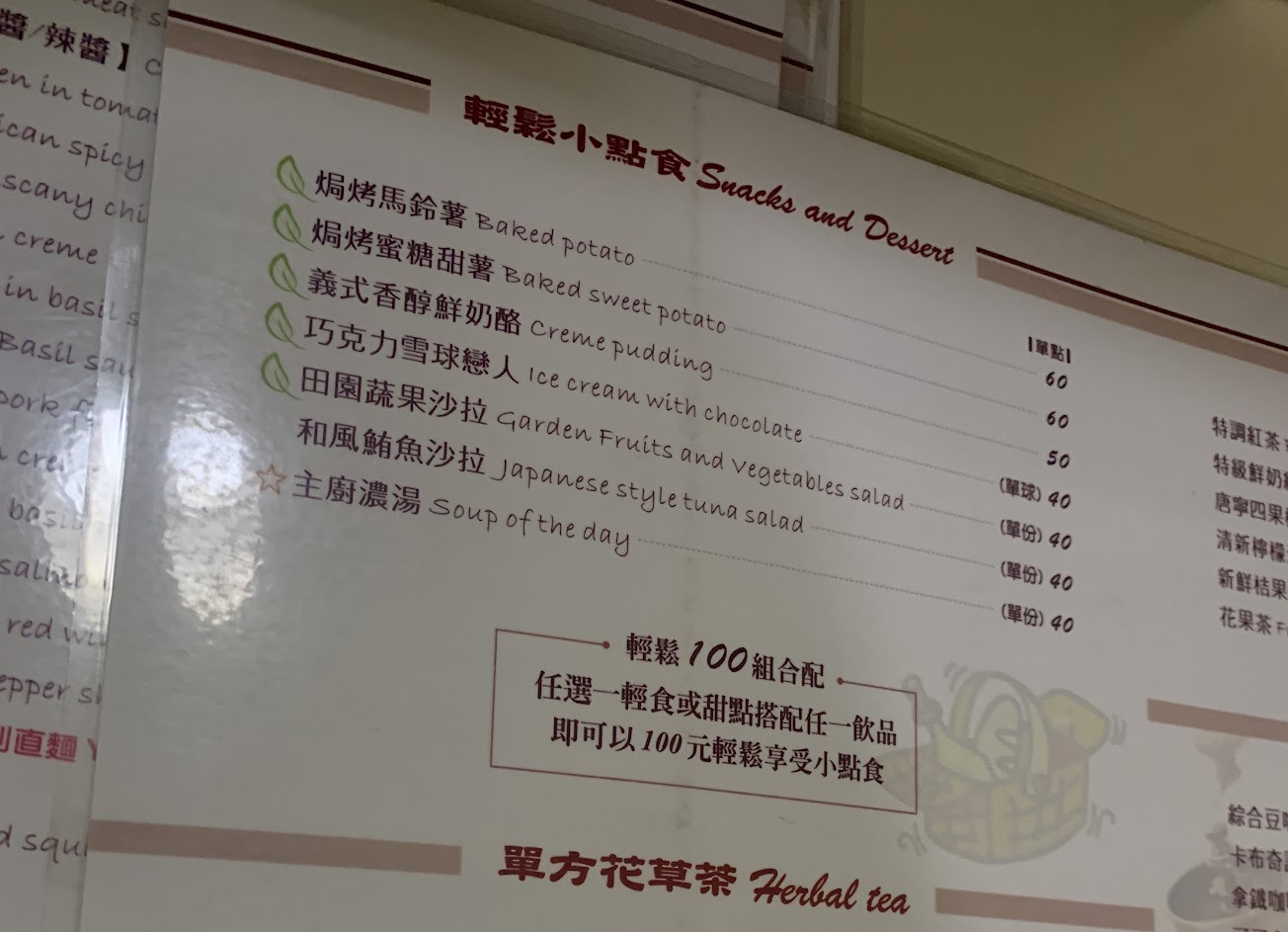100塊左右可以有一份主餐 湯 跟飲料