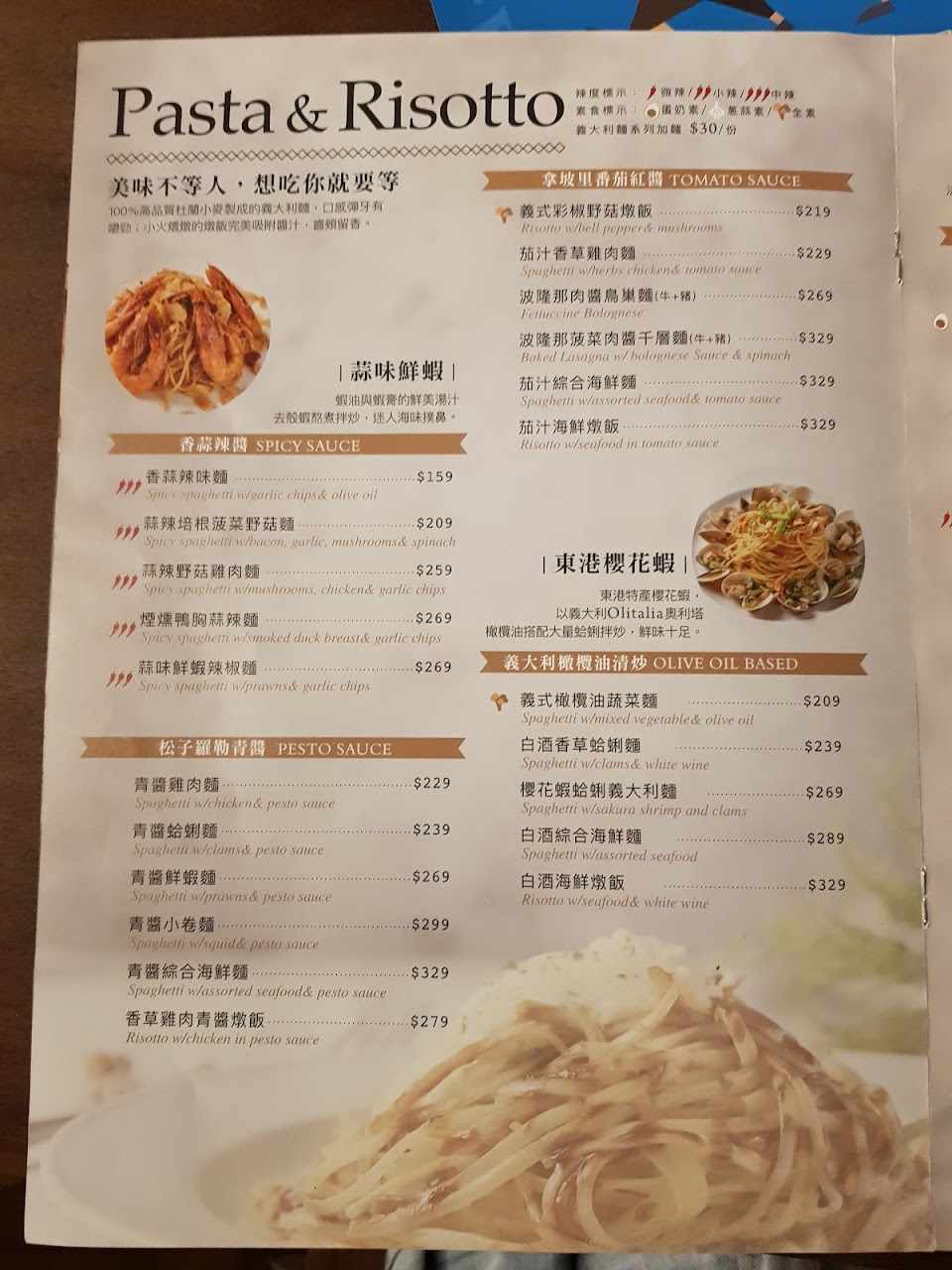 如果不喜歡吃濃白、紅、青醬 還有清炒口感的義大利??麵可供需選擇 但口味的堅持上 店家上是不退讓的ㄛ⋯⋯ 辣度無法調整