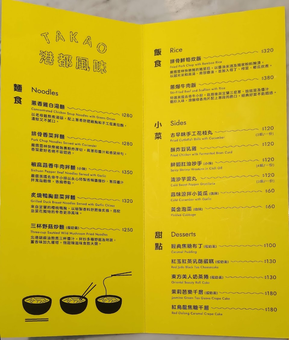 一直以來都是在北部吃永心鳳茶,但其實家鄉就有這家店,這次返鄉就帶著家人來嚐嚐鮮,不過比較另外意外的是這家分店是改成麵屋的形式。雖然訂位的時候店員有告知,但原本是以為既有餐點都有,然後新增麵食,但結果是大部分的主食都換成麵食了。 這次我點的雞白湯麵味道非常的棒,紫洋蔥的甜味,配合鹹香適中的湯頭,入口口味層次變化十分令人滿足,配著麵吃會讓人一口接著一口停不下來。但雞肉本體反倒是略有點乾柴,算是這道菜美中不足的地方,但整體口感仍舊是相當棒的一道菜品。主食上桌前,小黃瓜跟茭白筍先行到位,小黃瓜微微的辣度和爽脆的口感相得益彰,是十分開胃的小品,非常適合用來做開胃前菜!茭白筍的料理方式會讓人有在吃鹹酥雞的錯覺,很容易不小心就一口接一口的吃下去,店家甚至有賣啤酒,差一點就點下去啦! 這次的茶品沒有拍到照片,但來永心就是要喝茶,熱茶儀式感濃厚,冰茶杯具雅緻,都是十分不錯的選擇。這次我選擇冰的烏龍茶,而家人選擇熱的烏龍茶,兩種不同風味都一次滿足。喜歡聞茶香的朋友強烈建議點熱茶,會有很棒的體驗! 服務 內用 餐點類型 午餐 平均每人消費金額 $400-600 建議的餐點 蔥香雞白湯麵, 蒜味牛肉拌麵, 流沙芋泥丸, 小菜, 三杯野菇炒麵