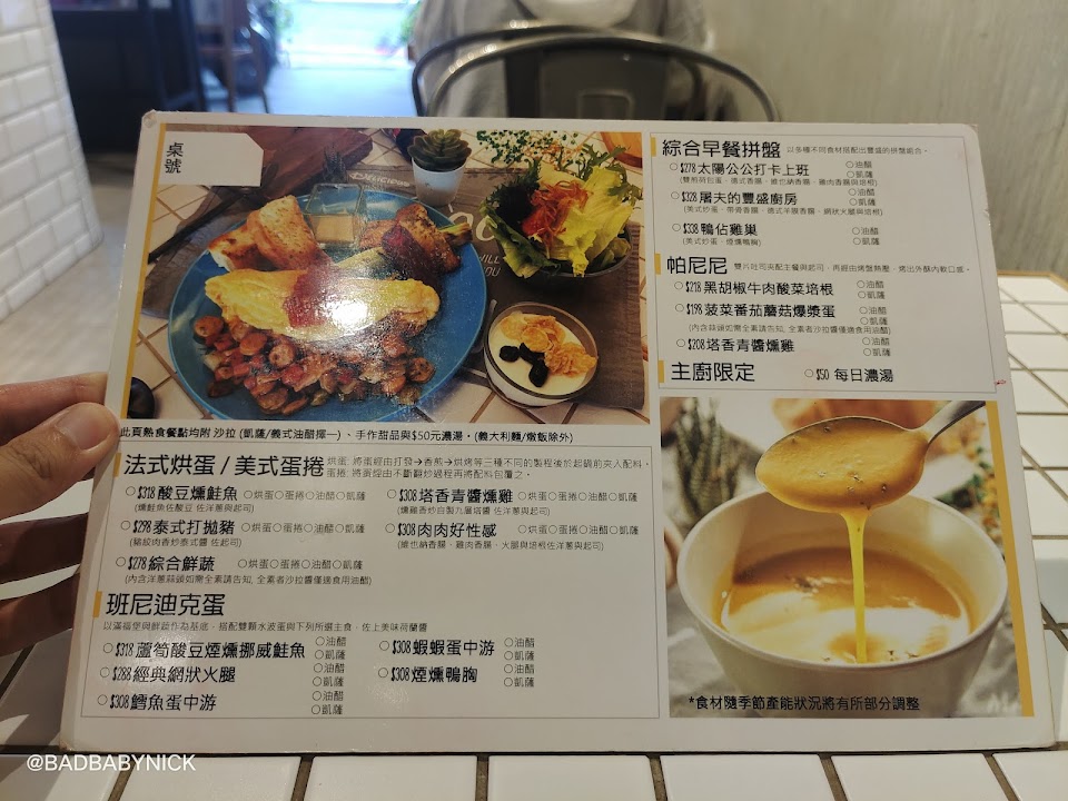 不經意找了這家早午餐,發覺他的早午餐新鮮、有創意、有驚喜、超好吃。 這裡的南瓜湯是我喝過最好喝的,烘蛋更是一絕,保証別家吃不到這種烘蛋。 樸實的廚師老闆,信心十足的臨桌介紹食材跟做法,終於了解到這些可口的餐點,原來是源自於他的用心……