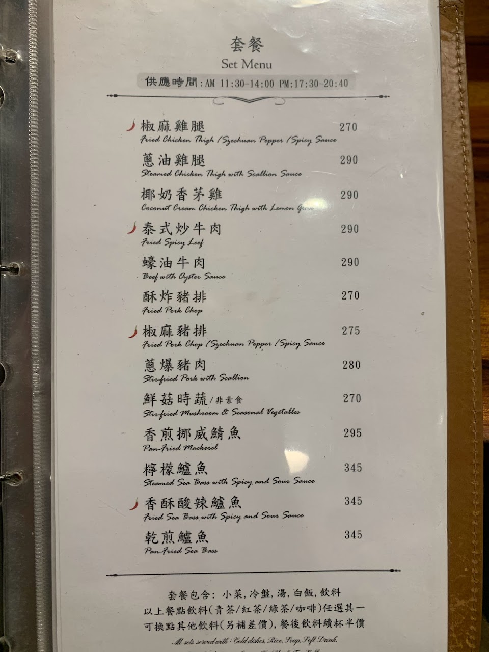 套餐價位在300元附近,CP值不錯,除了主菜以外有3項小菜、白飯、湯和飲料,主菜味道不錯,其他就一般。