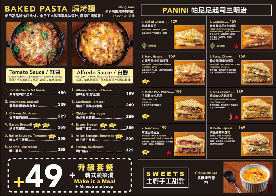 1:紅醬香烤雞肉蘑菇焗烤麵;很鹹沒紅醬味很難吃,不建議點。
