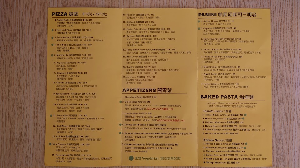 連鎖的披薩店,以價格來說不算特別貴或者便宜,餅皮也沒有窯烤的薄皮來的脆或是一般披薩的蓬鬆,比較沒有讓人印象深刻的記憶點,不過當天點的米蘭諾披薩調味卻相當不錯,鹹辣的滋味讓人食指大動,另外火腿丹麥帕尼尼也烤的相當酥脆,份量來說,8吋披薩或是單份帕尼尼都足夠一個成人的份量,相當有飽足感,值得推薦的連鎖披薩