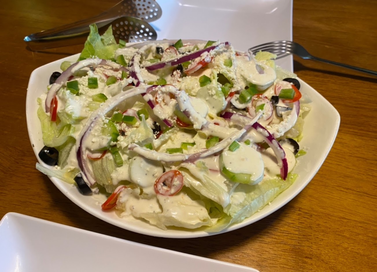 希臘沙拉根本不正宗,沒有使用真正的橄欖油或羊乳酪,披薩還可以,服務超級好