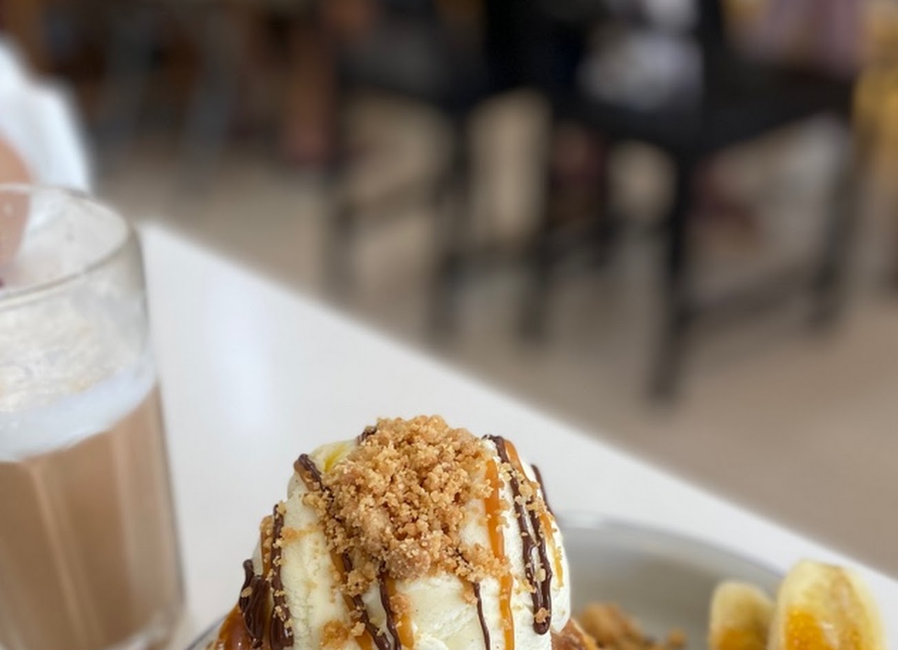 大推香蕉巧克力鬆餅 鬆餅現點現做 鬆軟香甜 上面再加一份冰淇淋 一旁的香蕉也不是擺飾 有著脆焦糖點綴 超級好吃 服務 內用 餐點類型 午餐 平均每人消費金額 $200-400 餐點:5 服務:5 氣氛:5 建議的餐點 藍莓鬆餅, 烤起司三明治 起司牛肉三明治與香蕉巧克力鬆餅