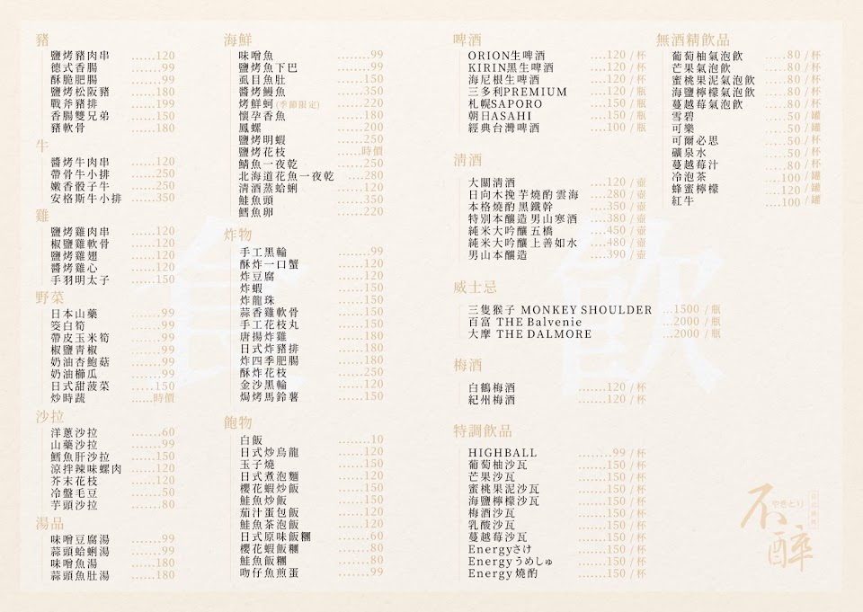 2024最新在地推薦餐廳的菜單_不醉居酒屋的菜單、圖片