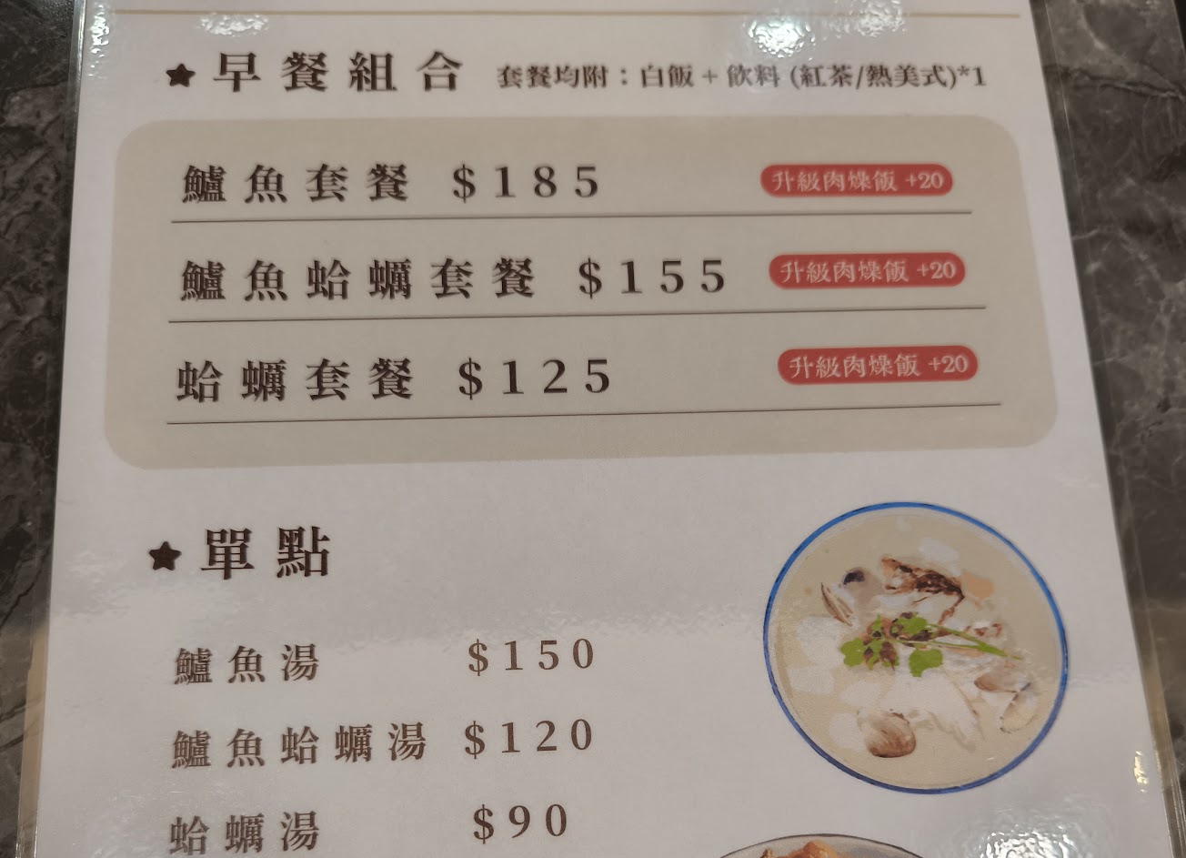 原來是以前的杯子變成的地方、來到此地很有歲月感!其實餐點真的很好吃、好喜歡中式餐點!蔥爆牛肉很下飯且厚度剛好、很推薦!也有單點了麻婆豆腐、也好吃!務必務必飯升級成荷包蛋飯、真是太讚了! 整體份量都很充足、環境乾淨、服務人員很親切,付款方式也有現金、Linepay及刷卡服務,真是多元,喜歡中式餐點務必前來!下次來吃早餐、再來分享! 服務 內用 餐點類型 午餐 平均每人消費金額 $400-600 餐點:5 服務:5 氣氛:5 建議的餐點 爆蔥牛肉