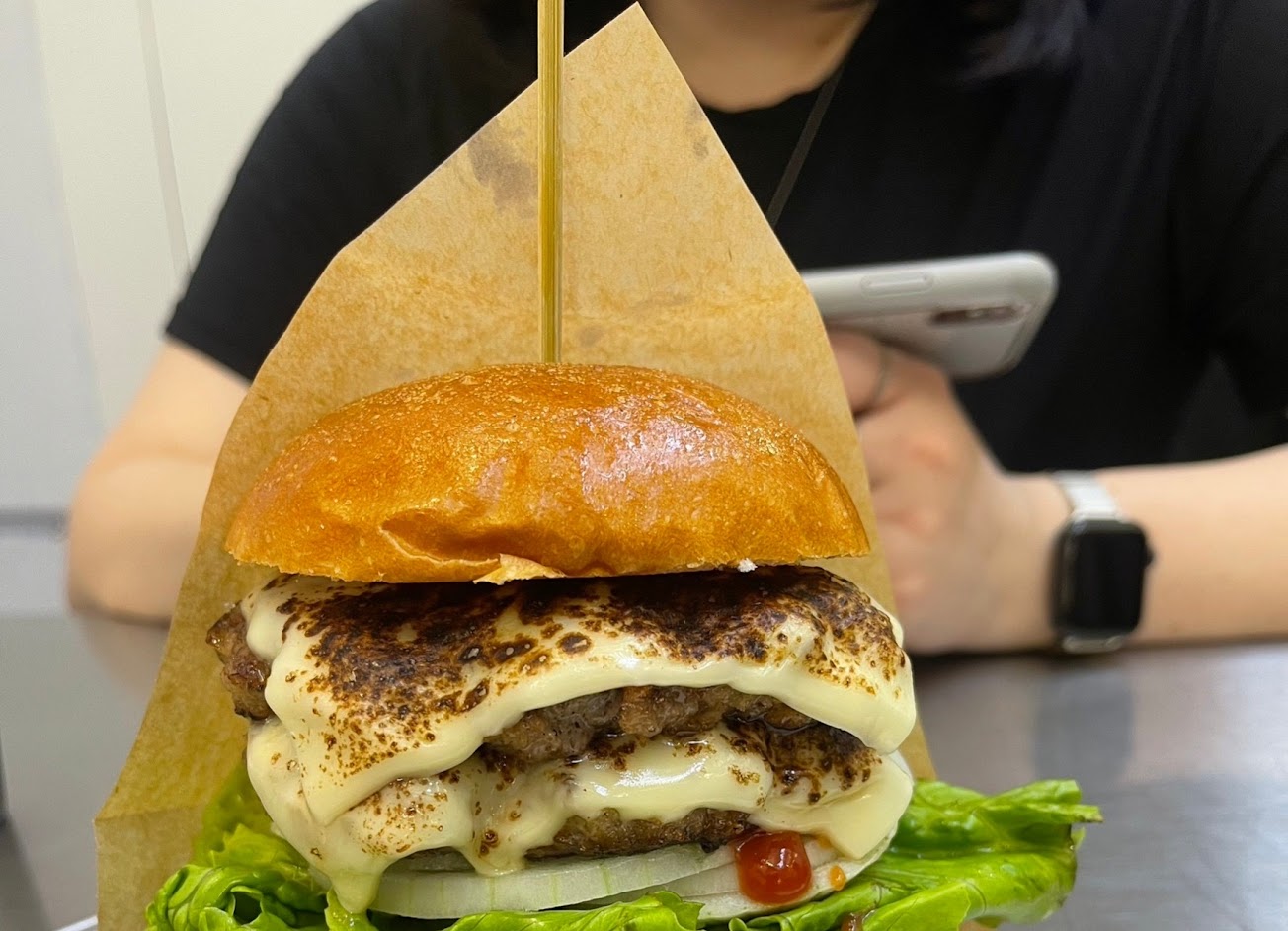 這可能是我在亞洲吃過的最好的漢堡之一。牛肉漢堡美味多汁,份量很大。