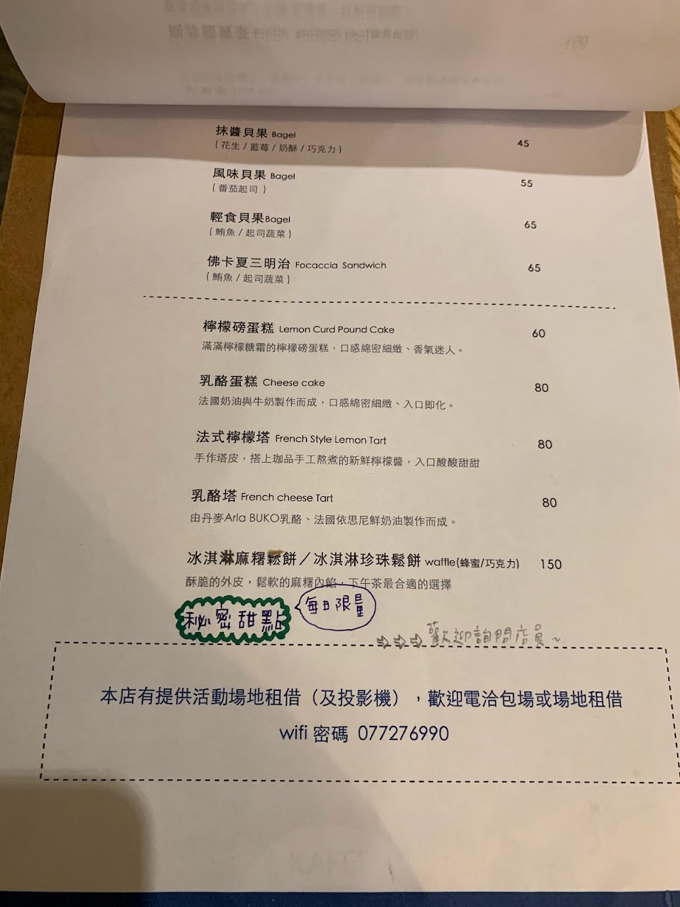 適合工作的地方(如果能有多一點鹹食可選擇就好了,老闆不定時換菜單。)
