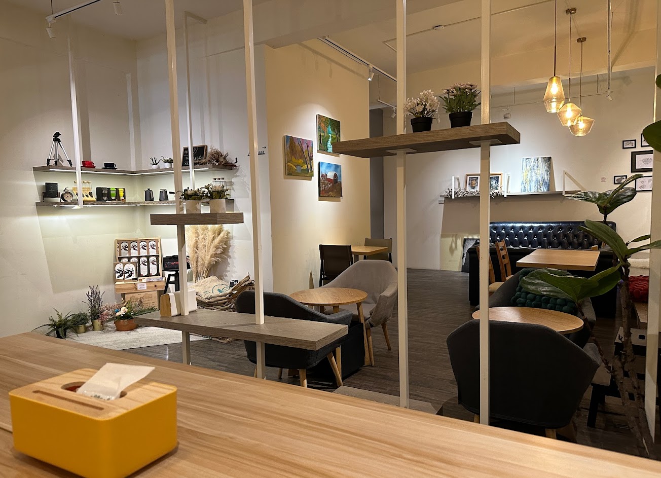 鬧中取靜,亁淨寬敞的咖啡空間 ,陳列著許多美麗的藝術品,非常適合整理靈感以及放鬆的好地方。