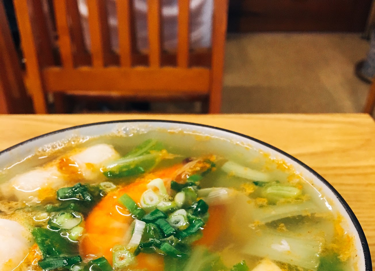 早上就可以吃鍋燒麵而且湯頭很清甜