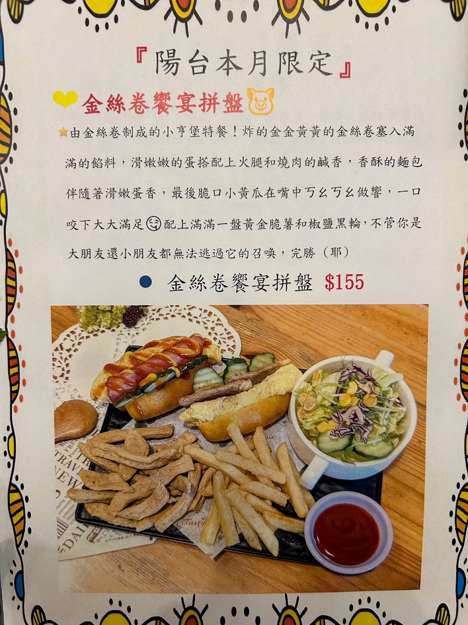 我們吃奶香吐司拼盤與炒泡麵豬排拼盤,餐點擺盤不錯,但環境太小,旁邊顧客聲音很大聲,餐點油炸類型太多,吃完的感覺負擔很重,不適合早餐與下午茶,午餐如果喜歡油炸類食物的推薦,但普通的話建議點其他品項。