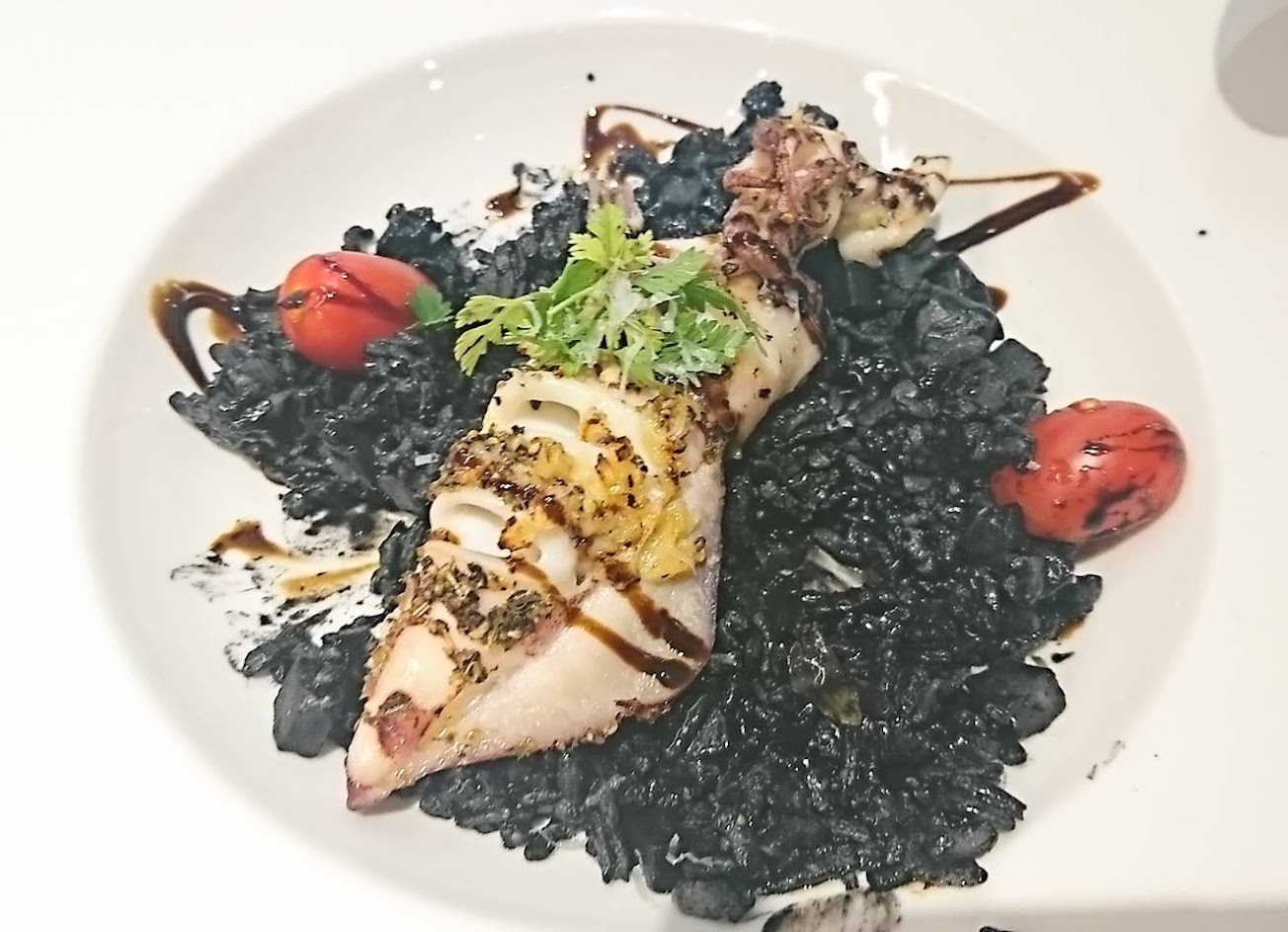 1.拿玻里風味松阪豬南瓜燉飯(NT385+10%服務費):松阪豬給的很大方,莫約10塊左右,厚度也是蠻厚的,咬起來是有嚼勁的口感,香氣十足、肉質鮮美醬汁可以襯托出肉的鮮美,也不會煎得太焦;燉飯整體口感偏清爽,印象深刻的是除了吃得出南瓜味外(不是像南瓜濃湯那樣很濃郁的口感,是清爽的那種),裡面還有南瓜粒,吃得到小塊的南瓜,還有一些培根(?)類的配料,可以整盤吃完完全不會膩。 喜歡南瓜的朋友可以試試看這道 2.爐烤鴨胸乳酪燉飯(NT385+10%服務費):起司味非常的濃郁,鴨肉也給的很大方肉質也很鮮美,朋友說很好吃。 3.香煎軟殼蟹海皇蛤蠣羅勒義大利麵(NT385+10%服務費):軟殼蟹有兩隻,非常好吃,外酥內嫩。