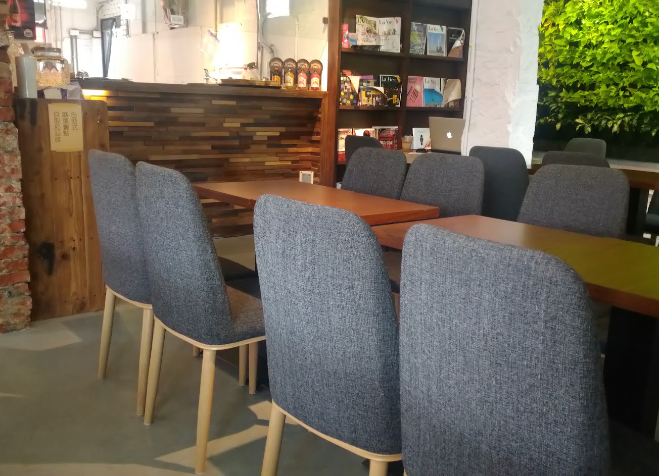 小小的綠色空間,餐點不多,但價格優惠,充電方便,適合當成臨時辦公室,停車方便,捷運站出口就到了!