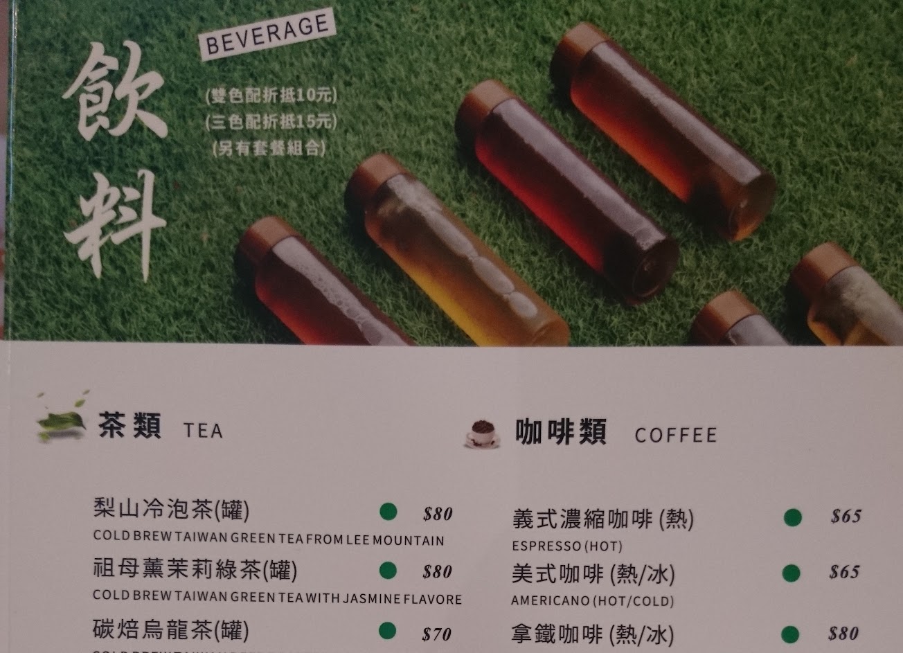 建築很有特色,餐點各有不同顏色,搭配起來有折扣!