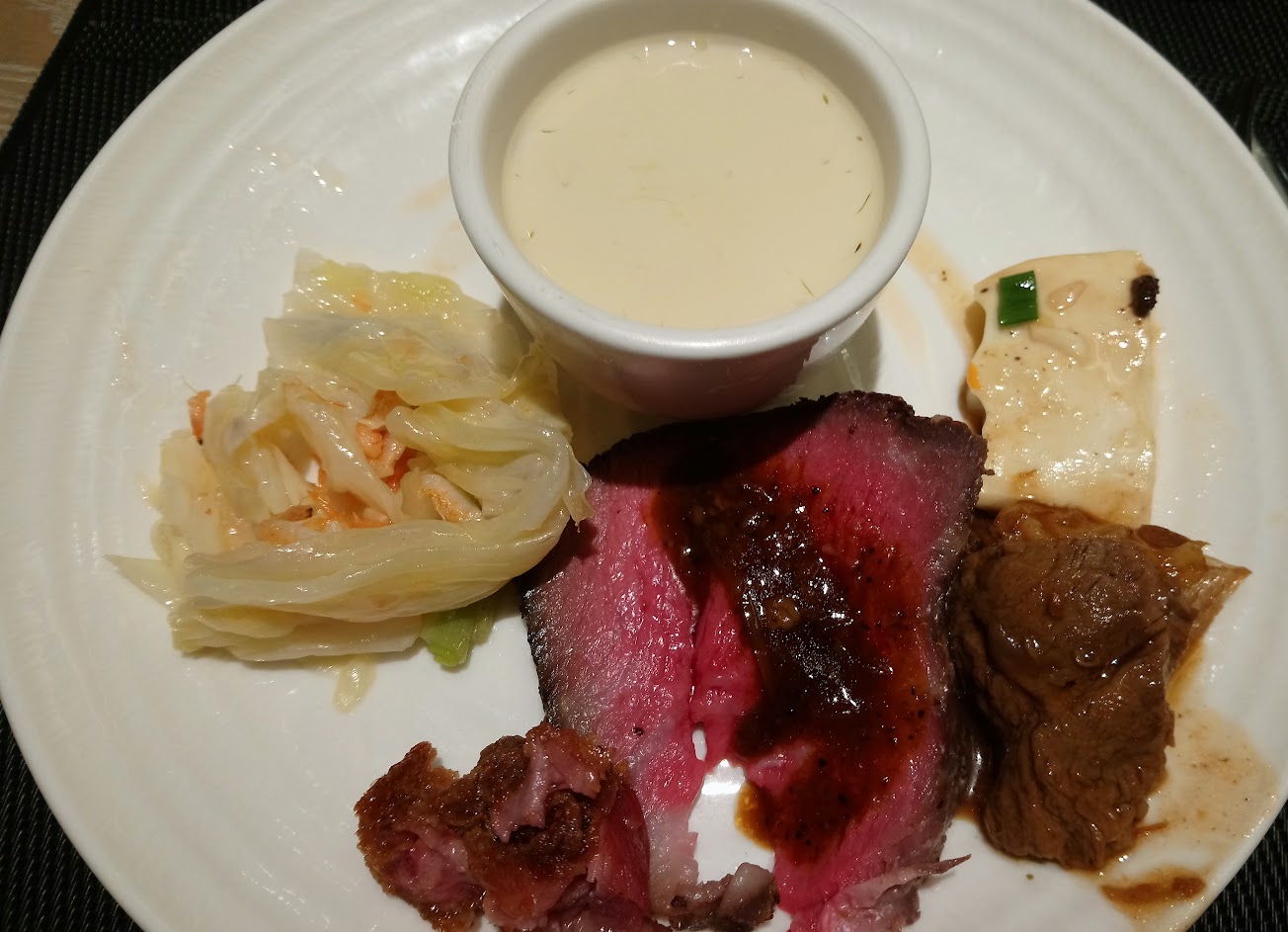 以價位和菜色言,算是對等。餐食乾淨衛生,菜式皆有創新,飲料口味,樣式多。餐食現點現作的亦不少,故人力成本一定提高。服務員亦不少,隨時都有人員協助收取餐盤。Roast Beef, 龍膽石斑魚湯,氮氣飲料,皆推。唯鮪魚生魚片筋較多。可能是挑選的部位關係。氣氛環境很好,是會令人想再次去用餐的餐廳。