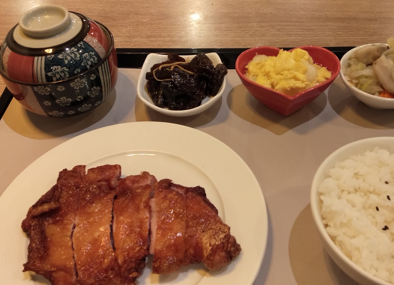 西式豬腳配上白飯和中式小菜,怪異的搭配。