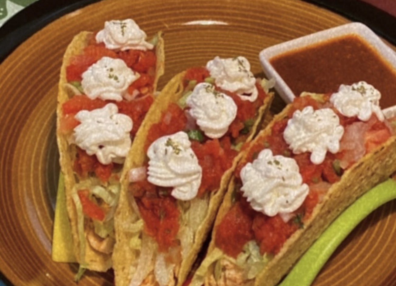 推開胃菜的nachos、硬殼塔可上面搭配的whipped cream讓味道更豐富而且解膩? …