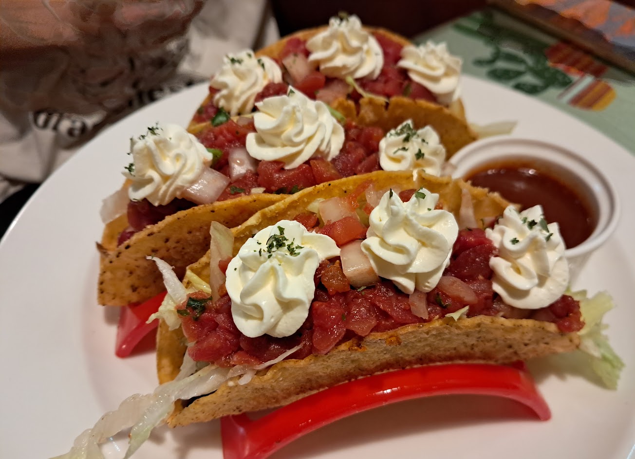 Taco用醃漬蕃茄罐頭真的非常糟糕,完全盡失墨西哥餐食的精神。莎莎醬都必需要用新鮮的蕃茄去製作,開餐廳不能偷懶!大概只剩塔可皮是合格的。