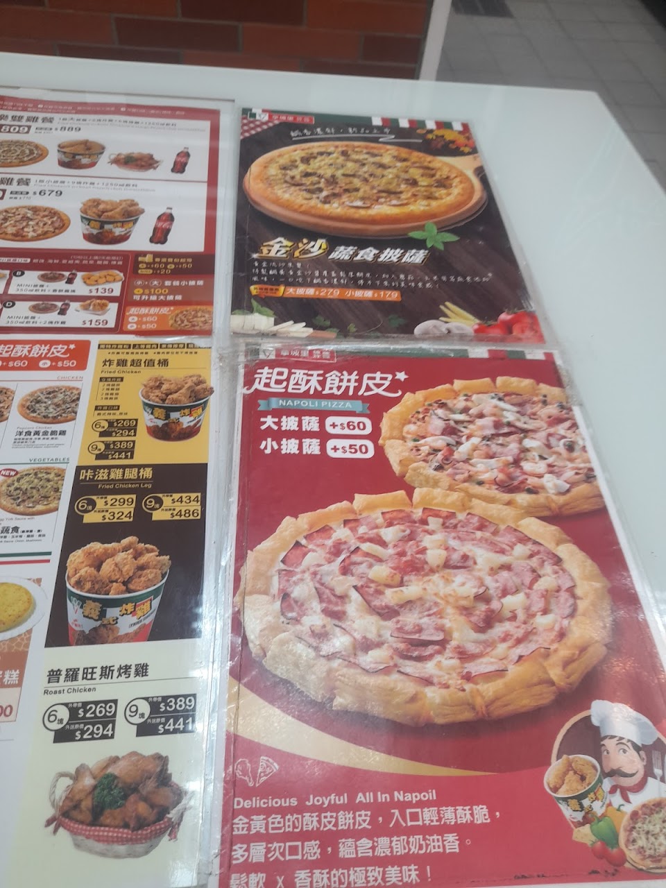 店面乾淨可惜點餐空間狹小 披薩好吃炸雞超? 價格比必勝客或達美樂便宜許多 外帶建議先電話預訂 店員會告知取餐時間 停車?算方便
