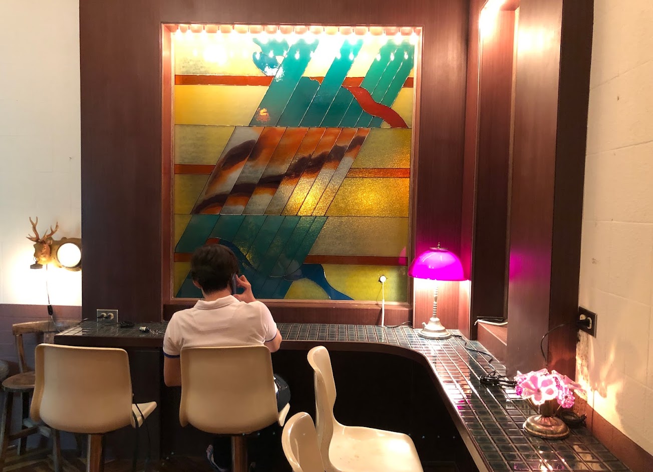 非常特別的老房子,磁磚,玻璃,座椅別具風格,一進門彷彿到了70年代的時光。