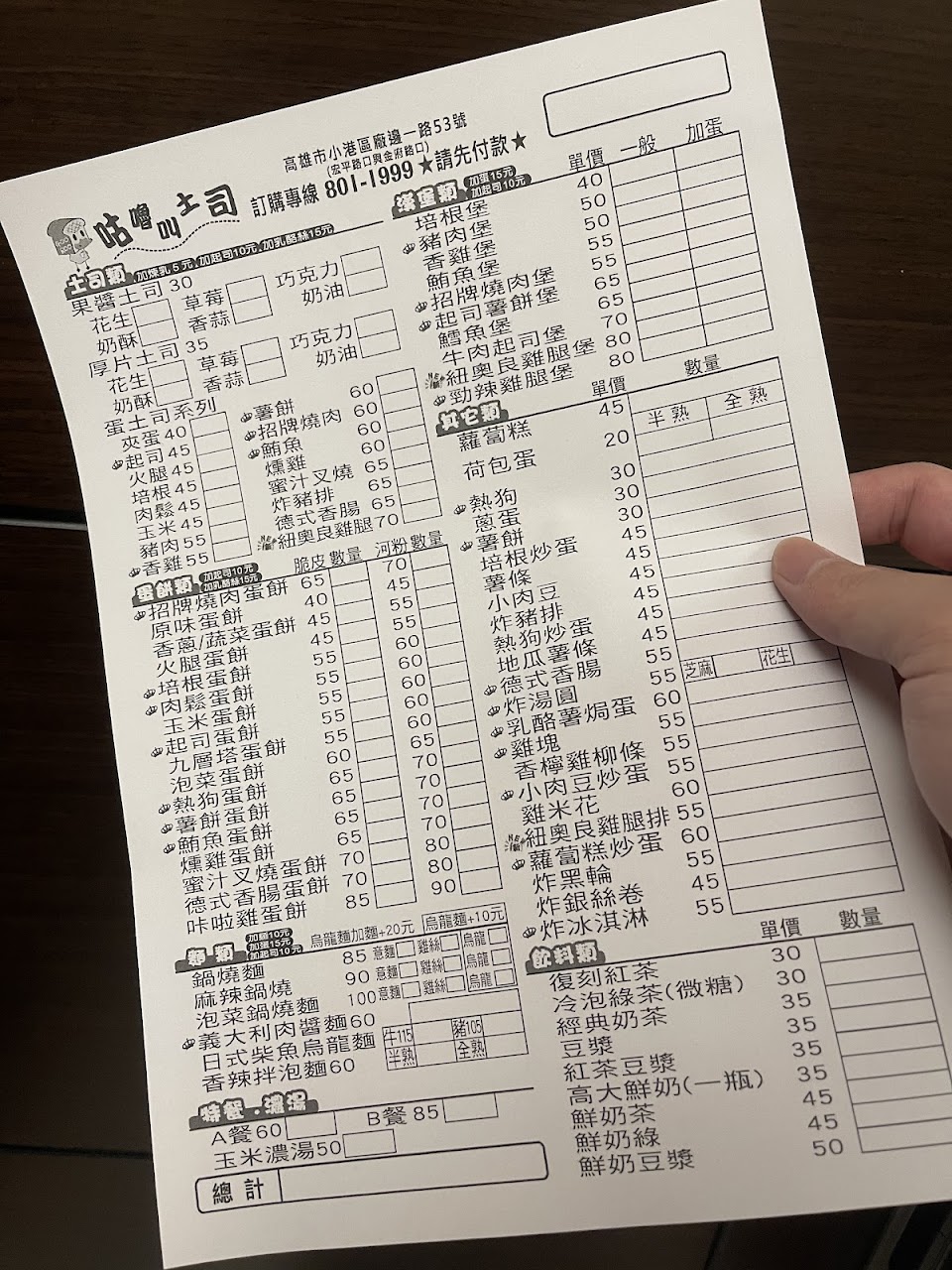 2024最新在地推薦餐廳的菜單_咕嚕叫吐司-小港店的菜單、圖片