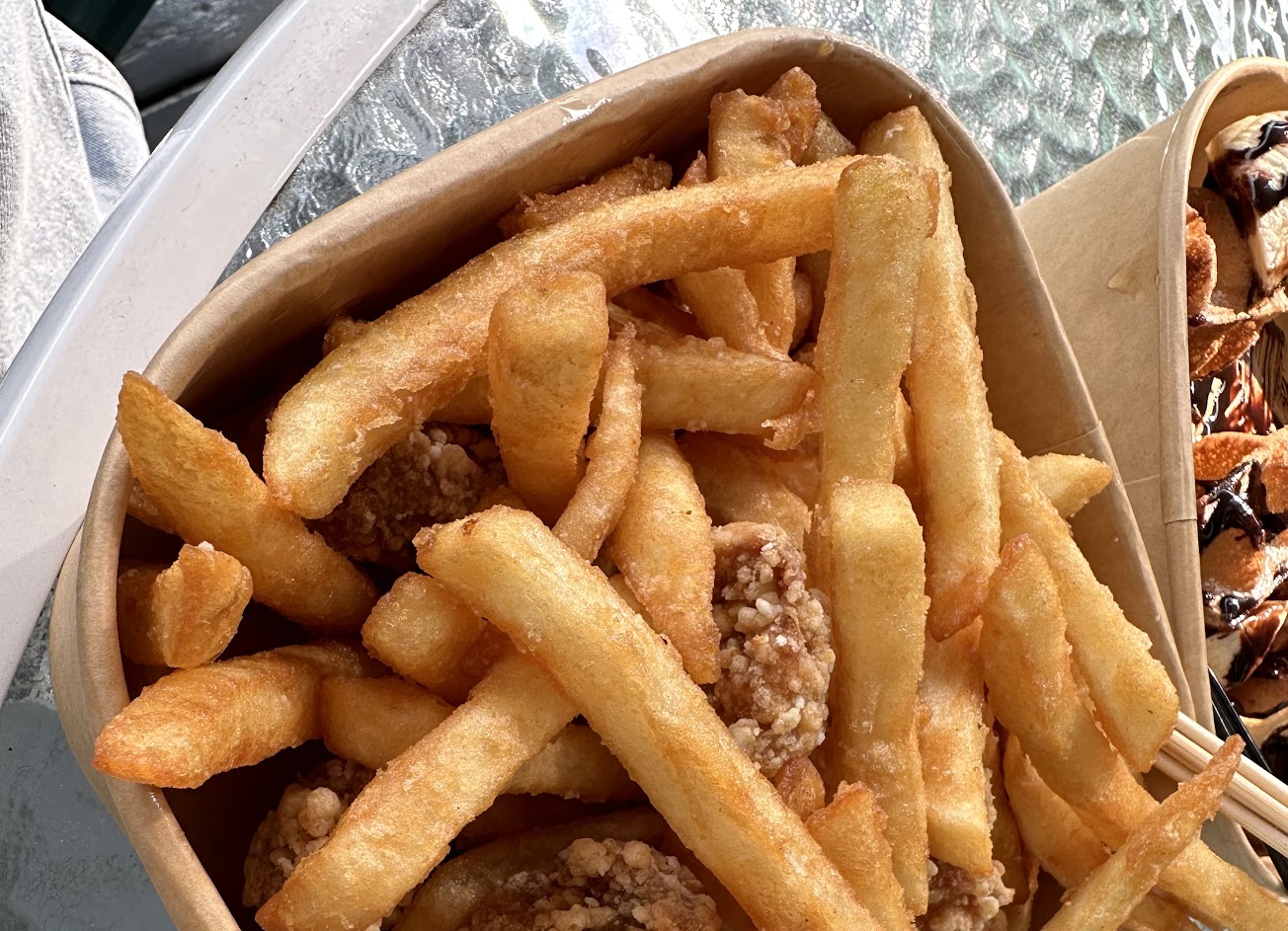 看飛機的好地方,鬆餅和炸物價格都算還ok