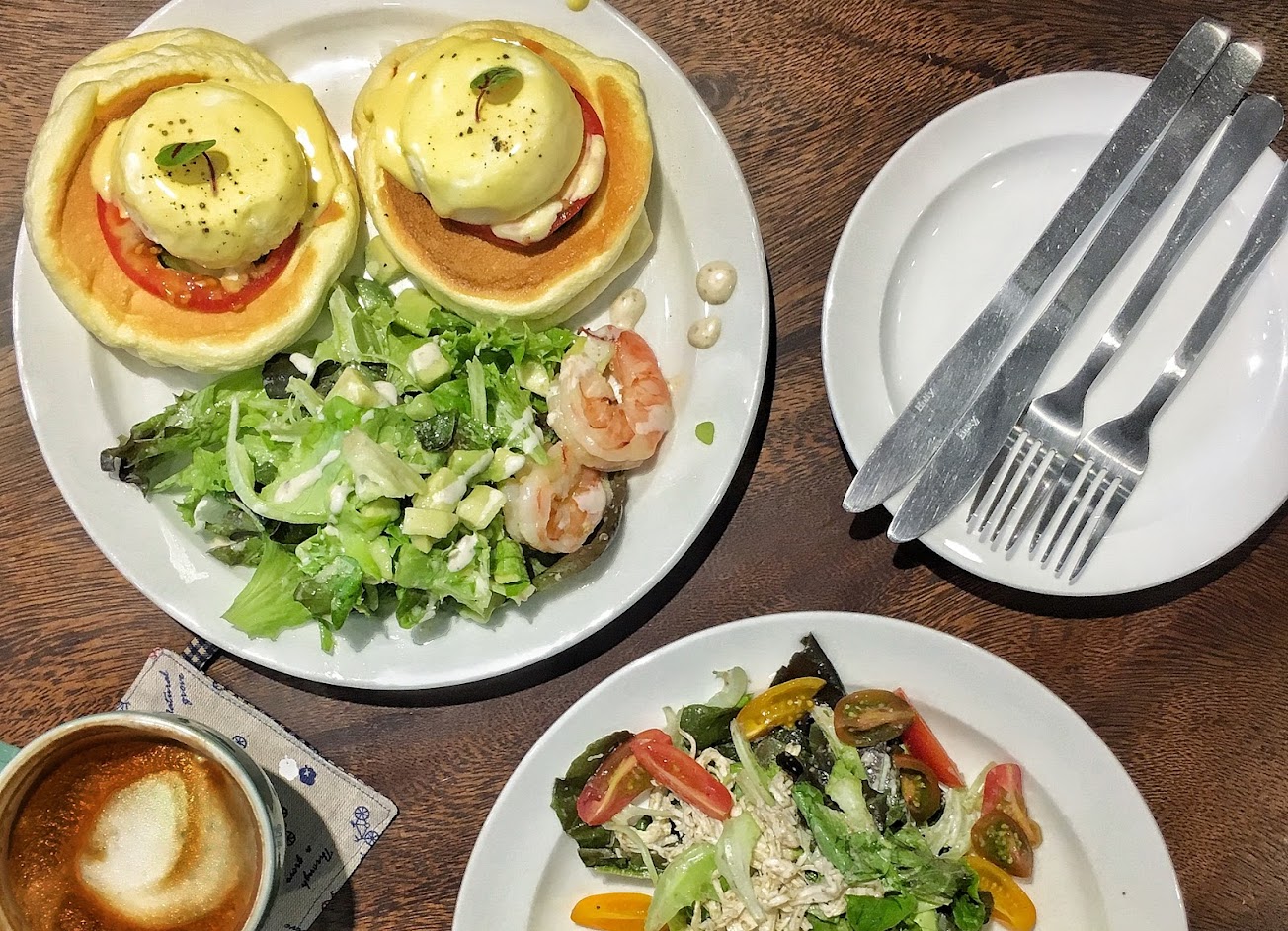 招牌舒芙蕾鬆餅好吃,還有其他如蛋糕、飲料、輕食料理、日本沙拉飯、客製化蛋糕。