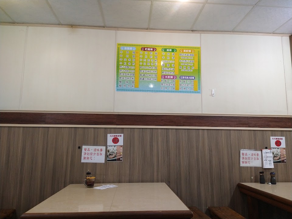 位於林園市區最熱鬧的地方,店內寬敞但有點暗,小菜在冰箱內自取。