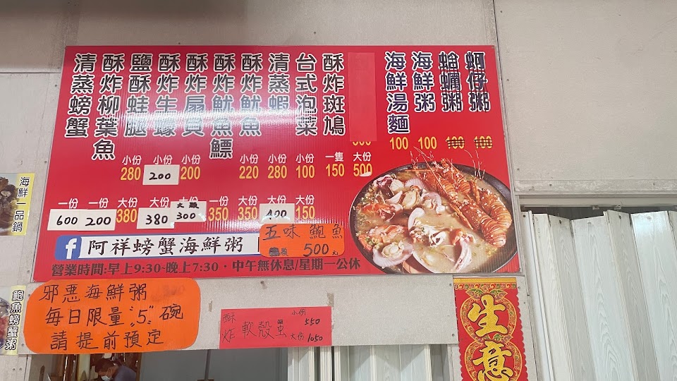 2024最新在地推薦餐廳的菜單_阿祥螃蟹海鮮粥的菜單、圖片