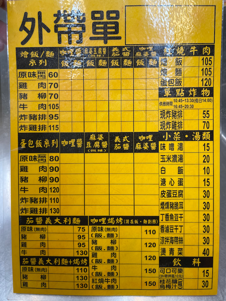 沒有肉沒有蛋的茄醬義大利麵,一口氣漲15元,一份黃麵加罐頭醬料的餐點要價$90,太誇張了,口味也很普通