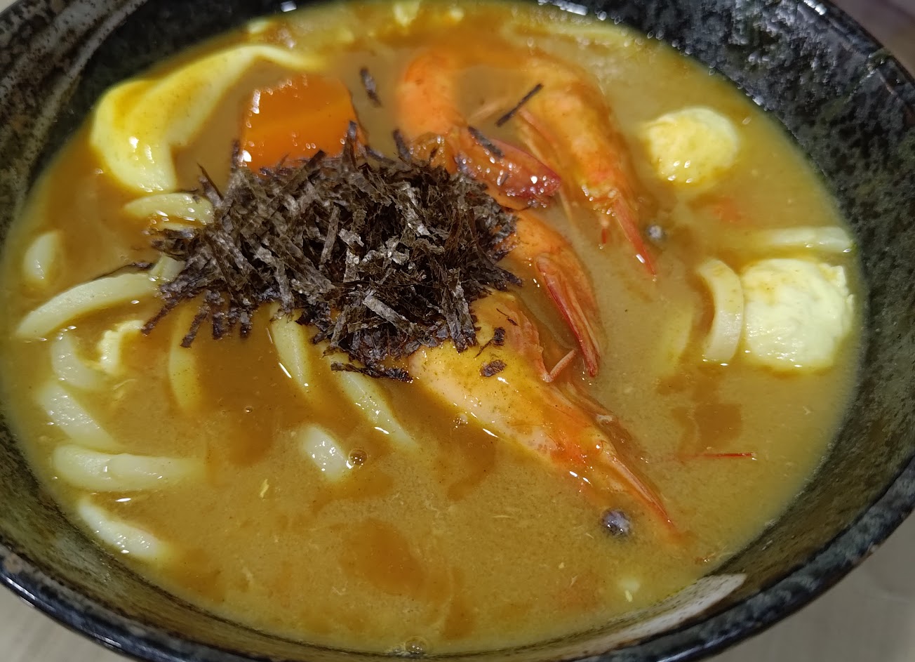 咖哩飯份量不多 但是好吃的,有附海帶芽湯,喝起來蠻鮮的。評論還有送脆薯。吃完剛好飽。
