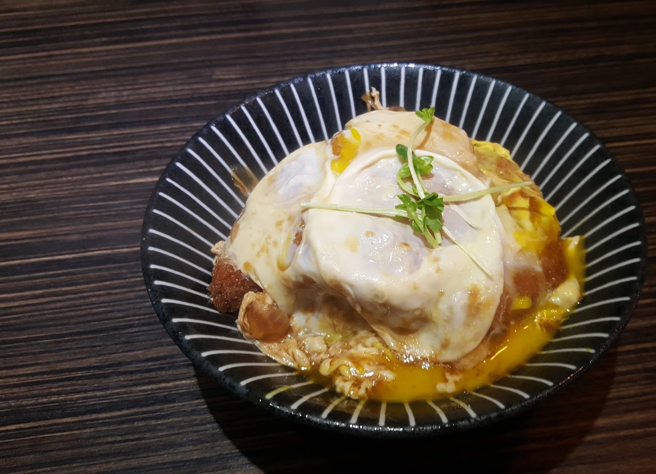 ”厚切黑咖哩起司豬排丼”,厚切豬排味道不錯,但因為太厚所以吃起來較柴,如果不一定要吃咖哩的話,選”酥炸豬排滑蛋丼”,CP值較高~