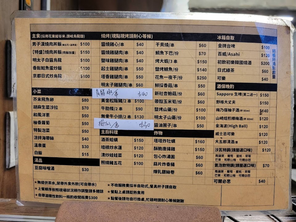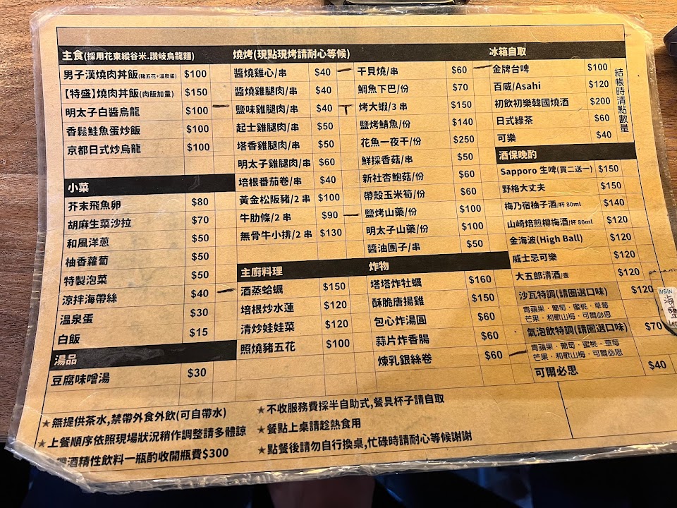 烏龍麵的調味和配料很敷衍 烤物和明太子山藥口味還行