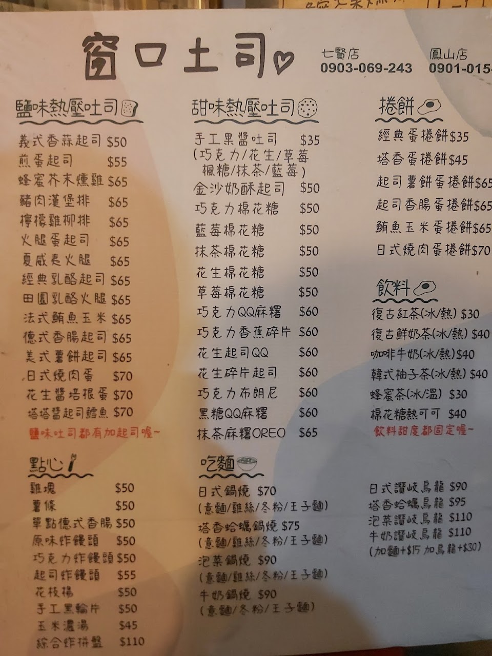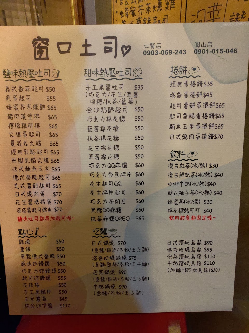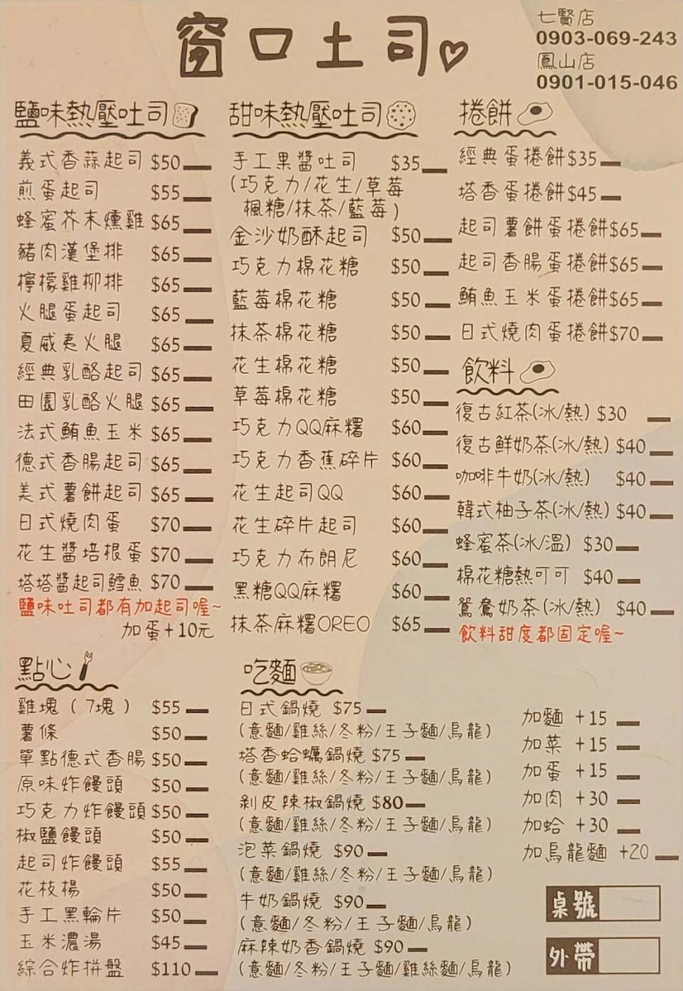 2024最新在地推薦餐廳的菜單_窗口土司鳳山店的菜單、圖片